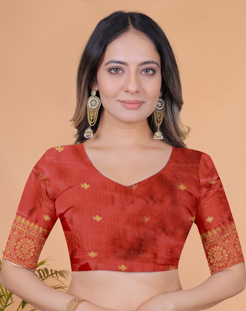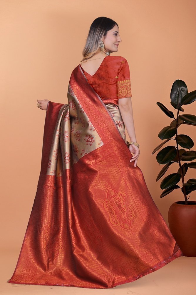 Avantini Golden Ember Banarasi Silk Saree With Unstitched Blouse Piece