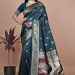 Avantini Teal Banarasi Silk Saree with Majestic Peacock Pallu With Unstitched Blouse Piece