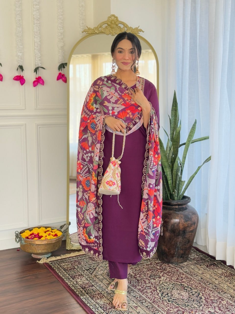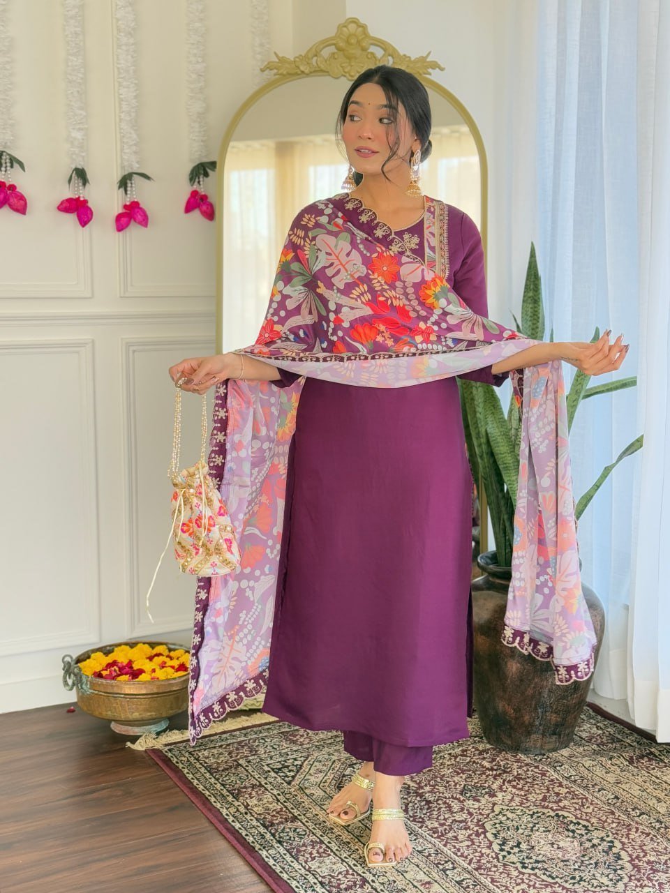 Avantini Women’s Black Viscose Chanderi Embroidered Straight Kurta Pant With Dupatta