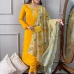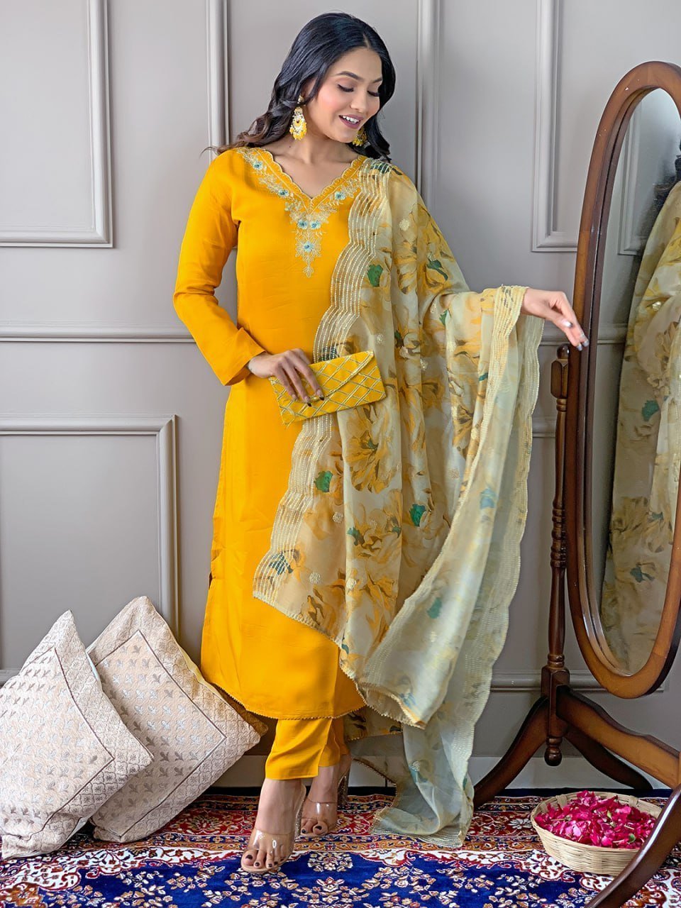 Avantini Women’s Blue Viscose Chanderi Embroidered Straight Kurta Pant With Dupatta
