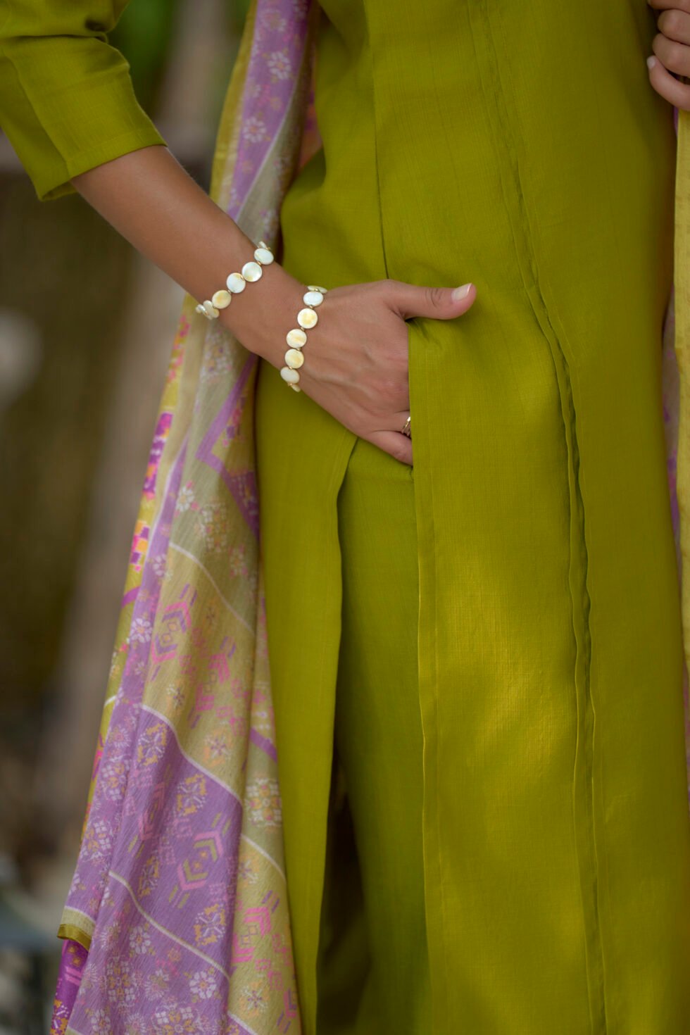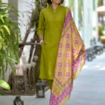 Avantini Women’s Cotton Green Emblished Kurta Pant With Dupatta