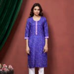 Avantini Women’s Cotton Linen Royal Blue Printed embellished Bandhani Kurti