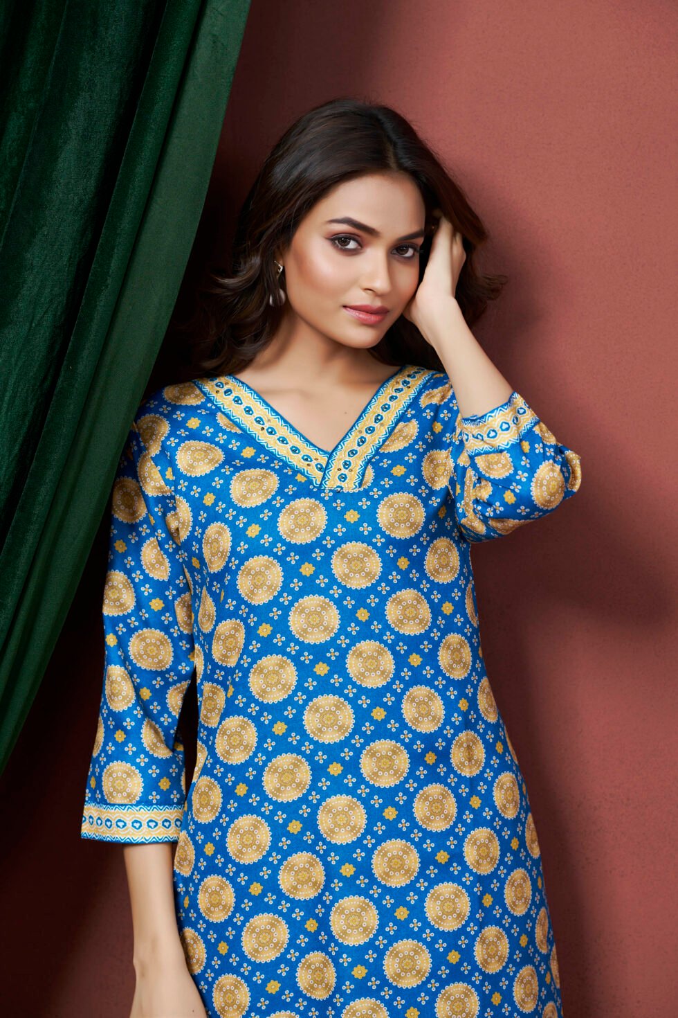 Elevate your ethnic wardrobe with this beautifully designed kurti that seamlessly combines tradition with modern elegance.