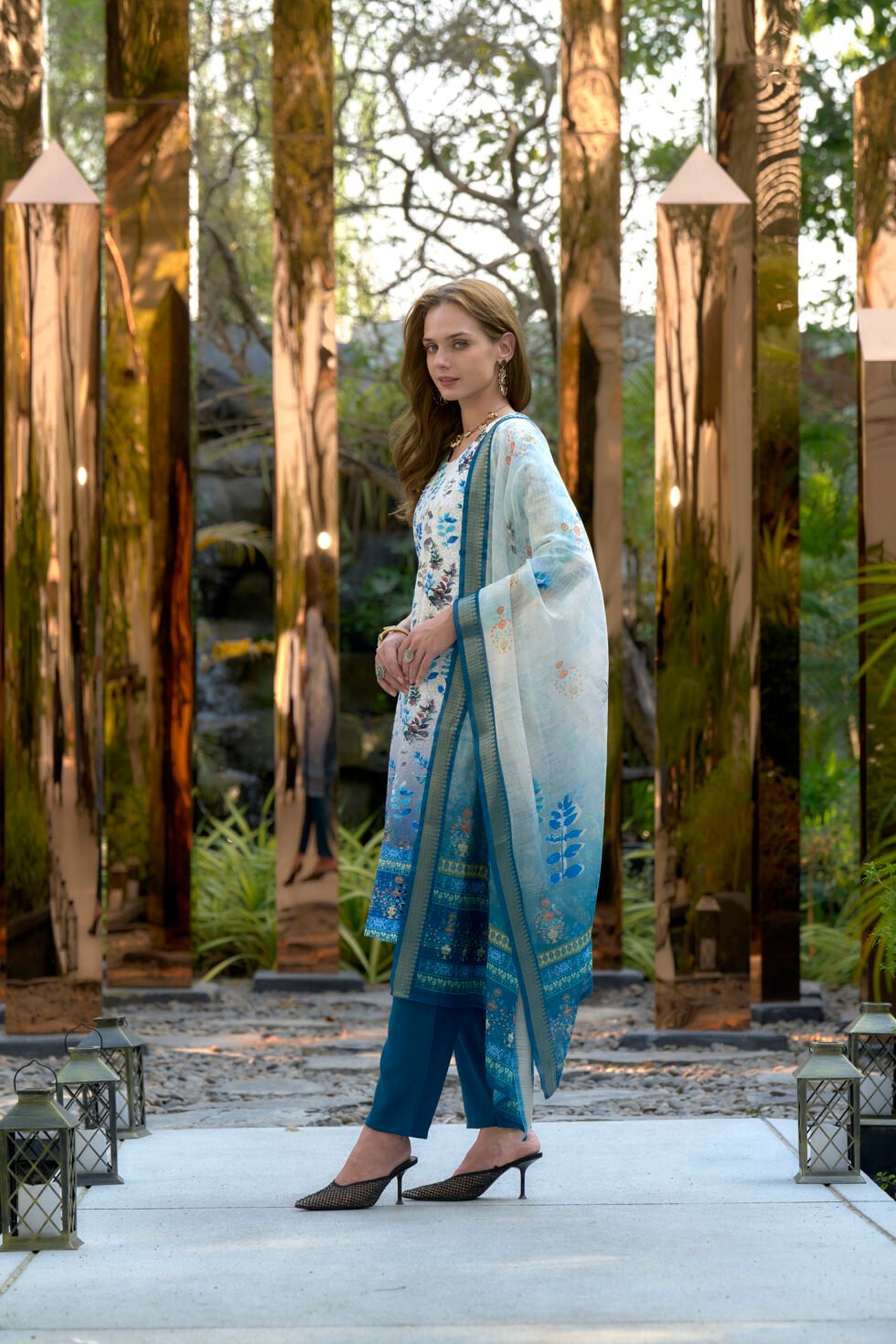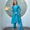 Avantini Women’s Cotton Sky Blue Floral Printed With Chikankari Embroidered Kurta Pant With Dupatta