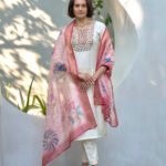 Avantini Women’s Cotton White Embroidered Kurta Pant With Dupatta