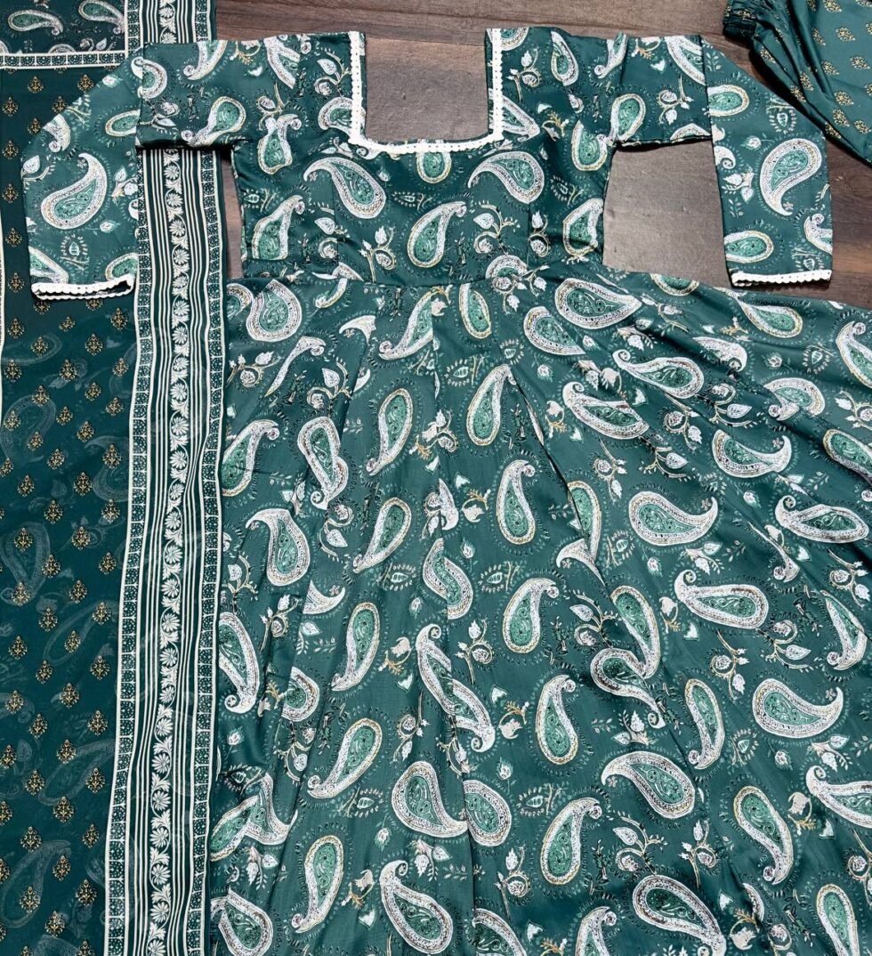 *FABRIC* :- ~ Maslin Fabric digital print work With white Embroidery lace