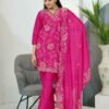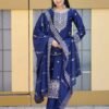 Avantini Women’s Navy Blue Chinon Embroidered Straight Kurta Pant With Dupatta