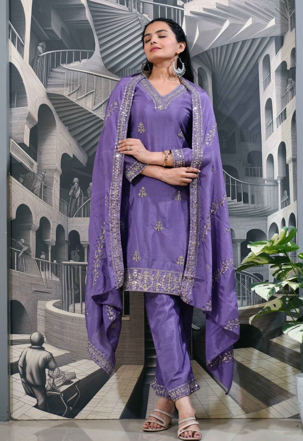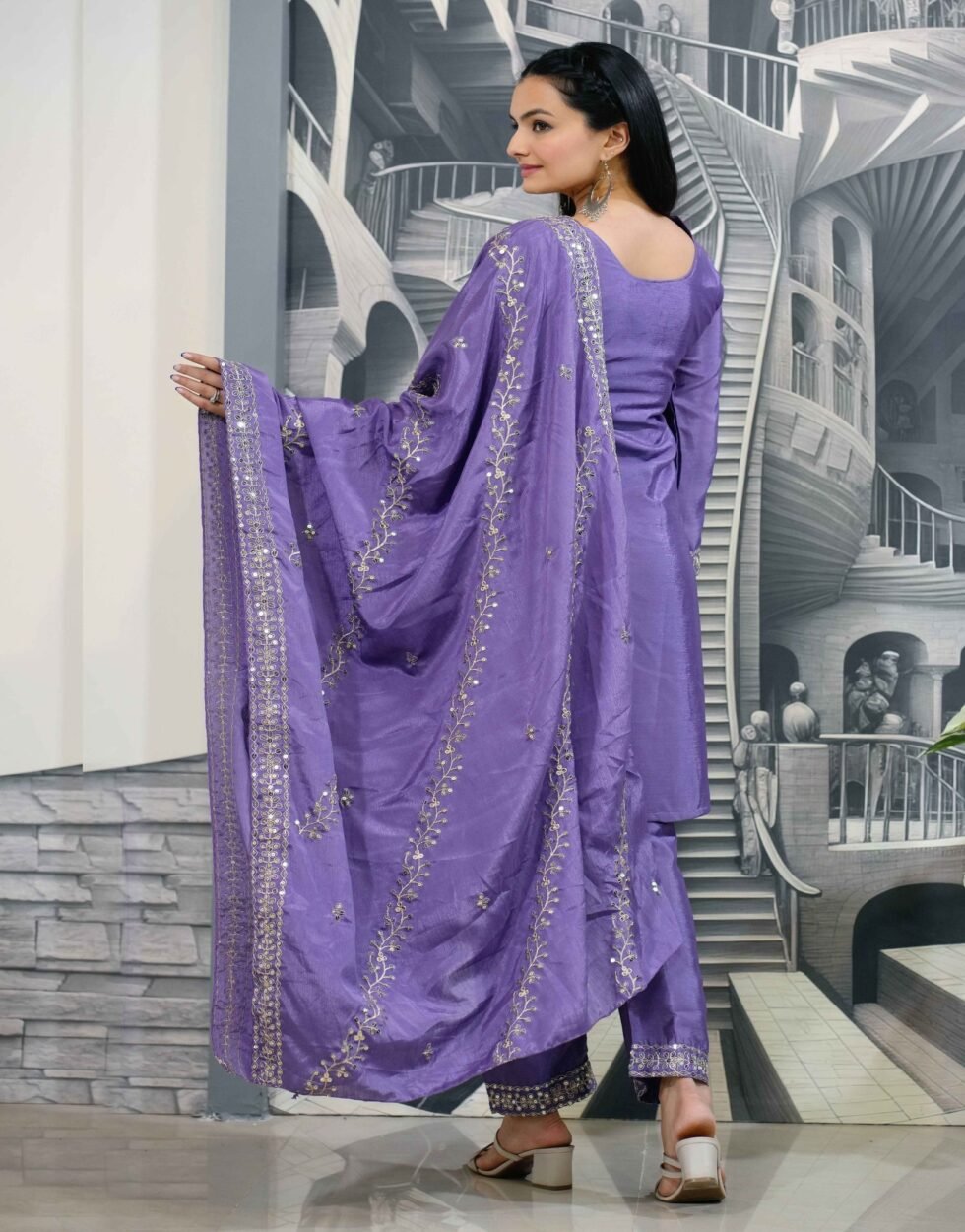 Presenting New Designer Embroidered Chinon Suit With Sequence Embroidered Work