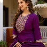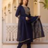 Avantini Women’s Navy Blue Rayon Embroidered Straight Kurta Pant With Dupatta