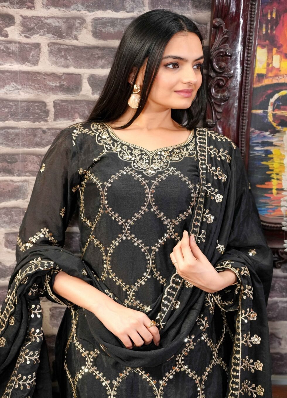 Presenting New Designer Embroidered Chinon Sharara Suit With Sequence Embroidered Work