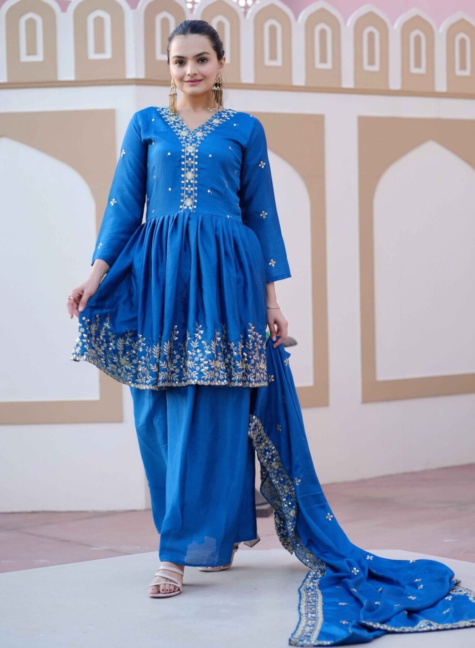 Presenting? New Designer Embroidered Chinon Sharara Suit With Sequence Embroidered Work