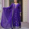 Avantini Women’s Purple Georgette Embroidered Anarkali Kurta Pant With Dupatta