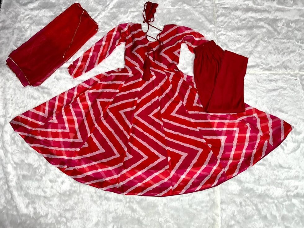 Avantini Women’s Red Organza Digital Print Anarkali Kurta Pant With Dupatta