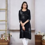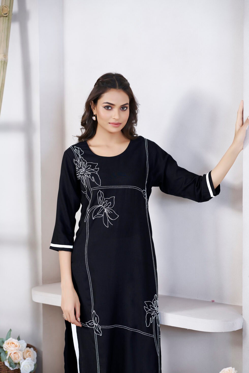 Avantini Women’s Viscose Rayon Black Floral Embroidery Kurti