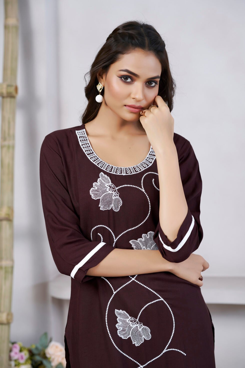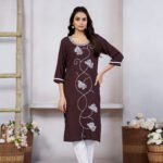 Avantini Women’s Viscose Rayon Brown Embroidery Kurti