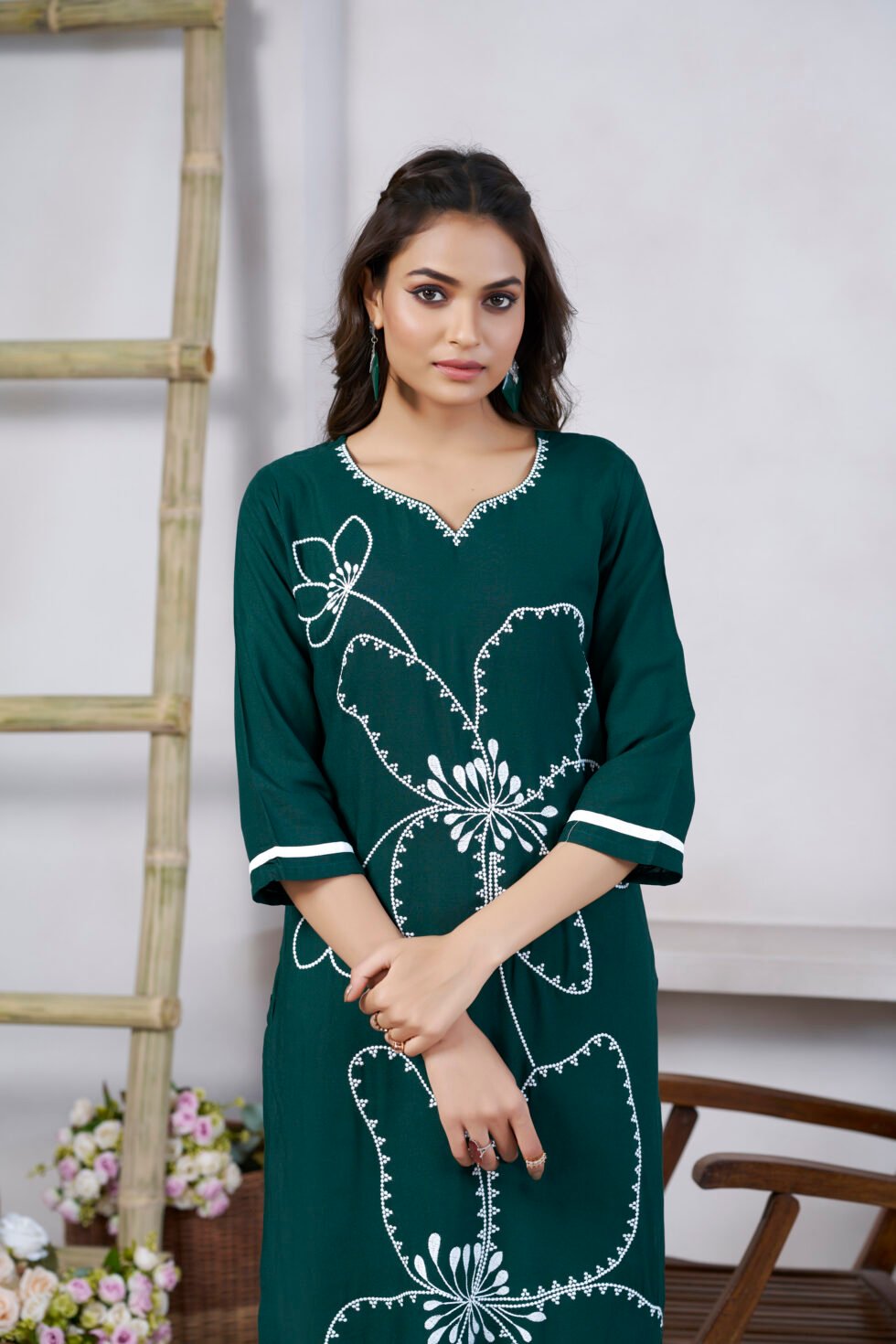 Elevate your ethnic wardrobe with this beautifully designed kurti that seamlessly combines tradition with modern elegance.