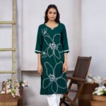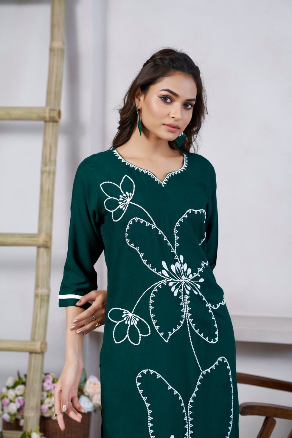 Avantini Women’s Viscose Rayon Green Embroidery Kurti