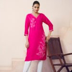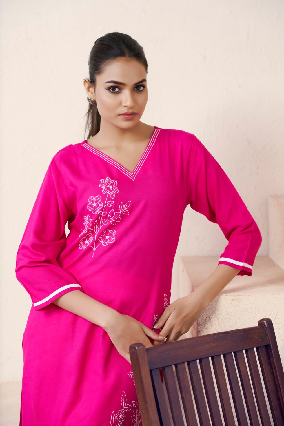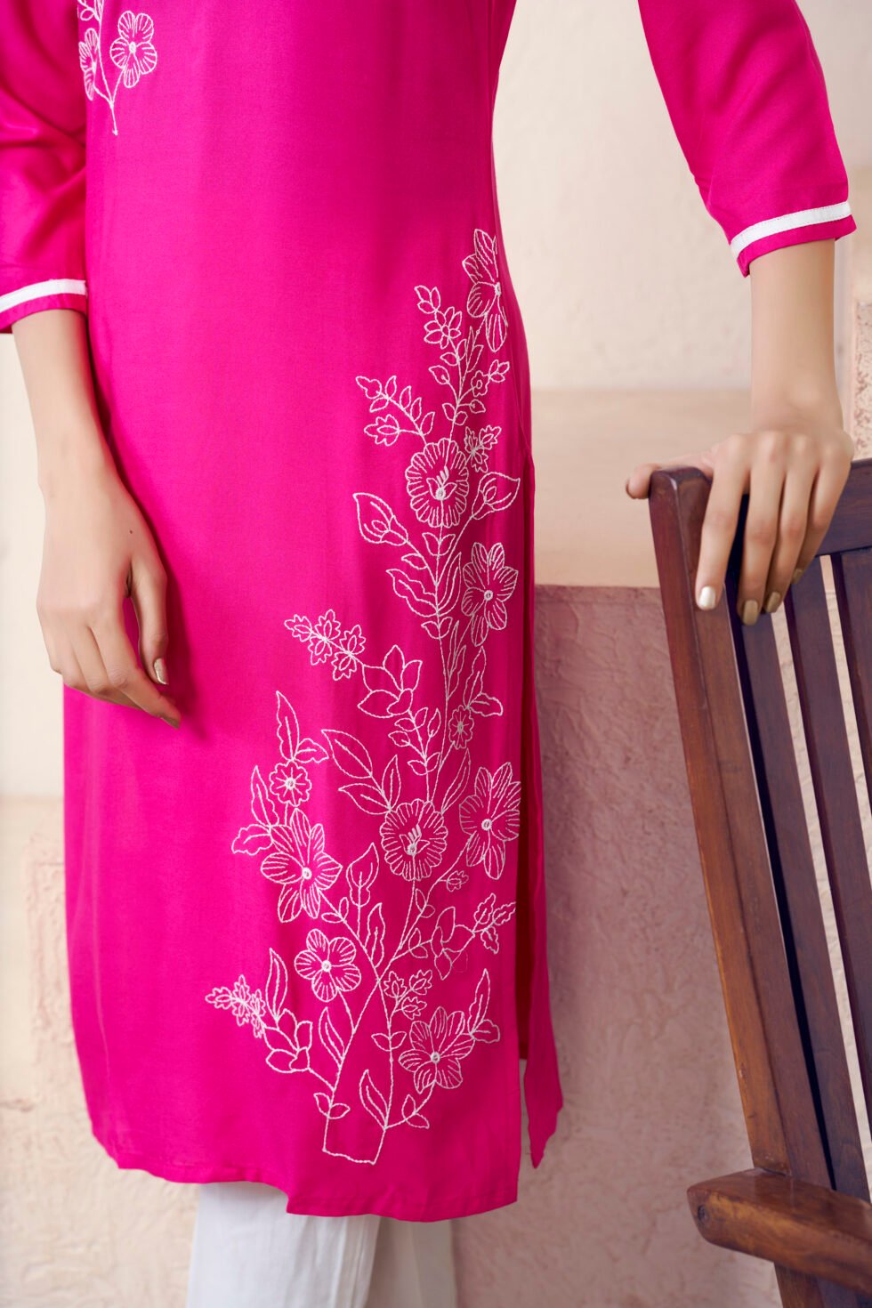 Avantini Women’s Viscose Rayon Pink Floral Embroidery Kurti