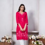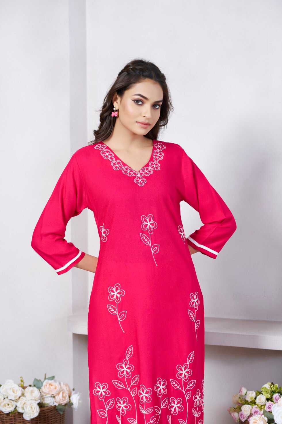 Avantini Women’s Viscose Rayon Pink Floral Embroidery Kurti