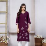 Avantini Women’s Viscose Rayon Wine Floral Embroidery Kurti