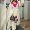 Avantini Women’s White Faux Georgette Embroidered Straight Kurta Pant With Dupatta