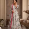 Avantini Women’s White Georgette Embroidered Anarkali Kurta Pant With Dupatta