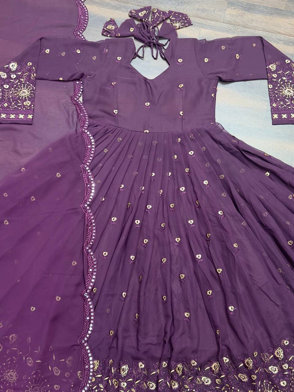 Avantini Women’s Wine Georgette Digital Print Anarkali Kurta Pant With Dupatta