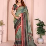 Its unique blend of earthy shades with modern patterns makes it perfect for both traditional functions and festive celebrations. A stylish pick that balances simplicity with elegance.