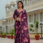 Chinon Digital Print Ready To Wear Saree With Blouse Piece