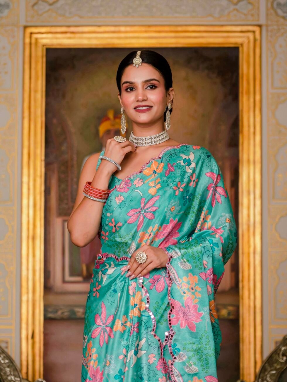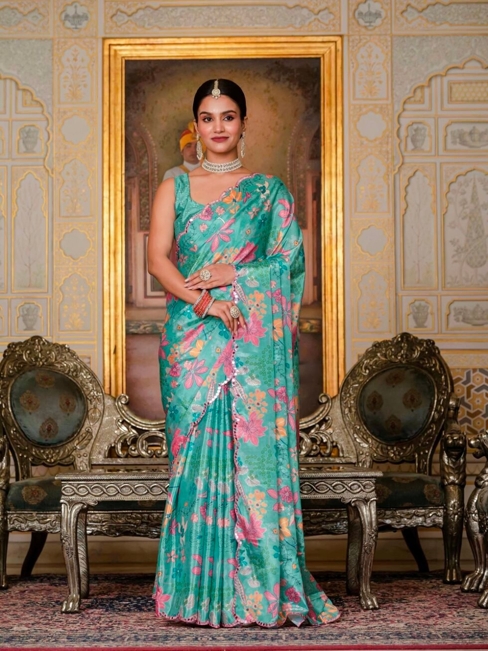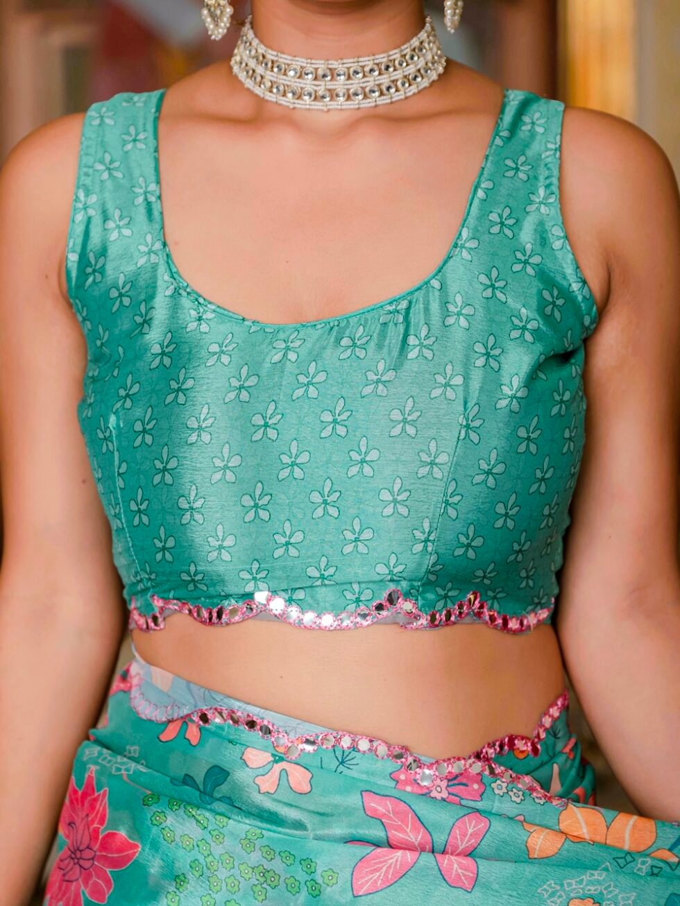 Chinon Digital Print Ready To Wear Saree With Blouse Piece
