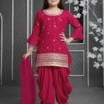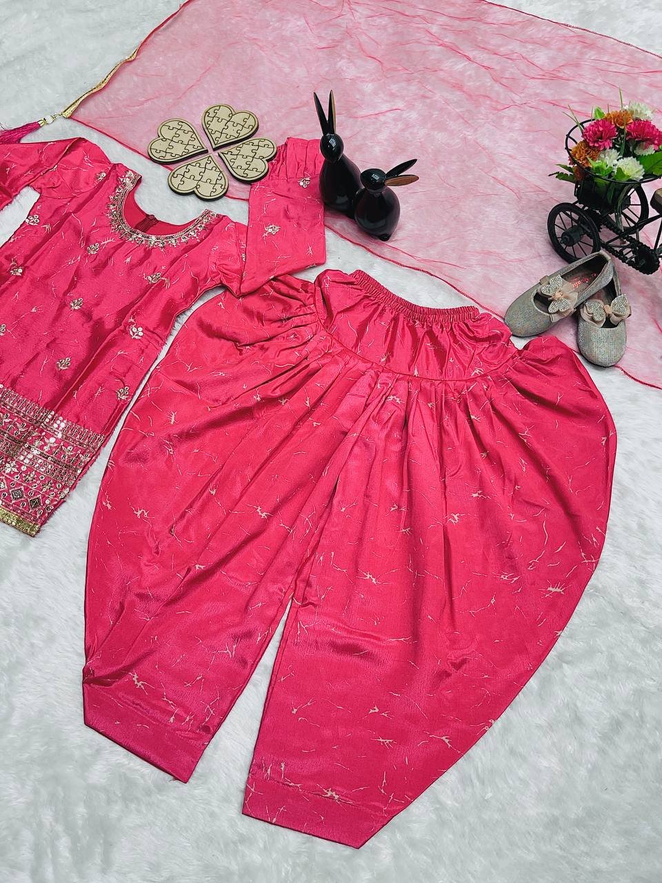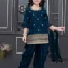 Girl’s Chinon Embroidery Straight Kurta Dhoti With Dupatta
