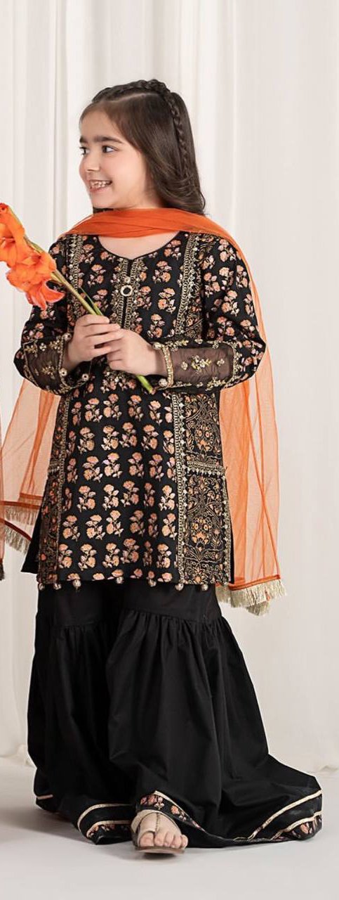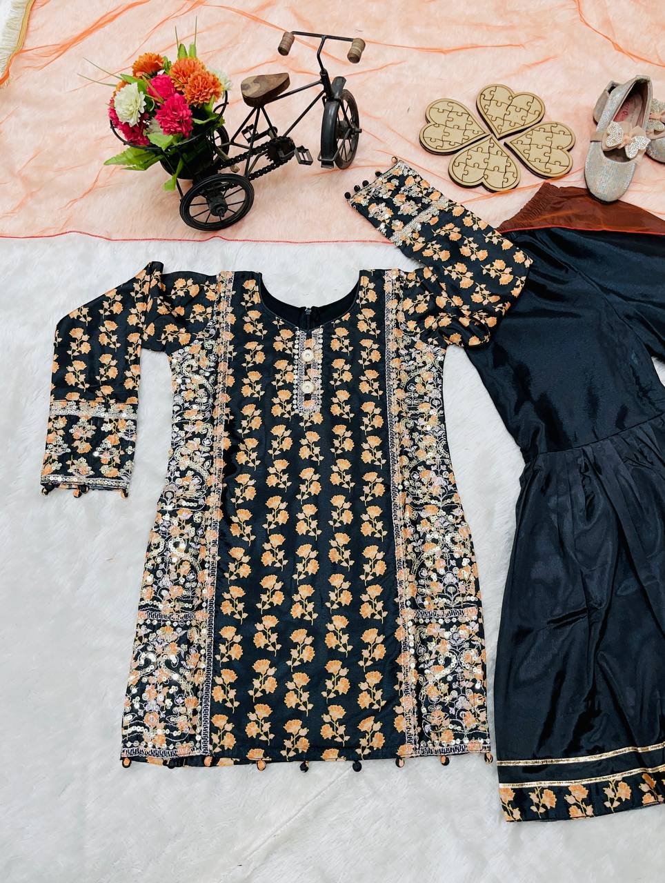 Girl’s Chinon Embroidery Straight Kurta Sharara With Dupatta