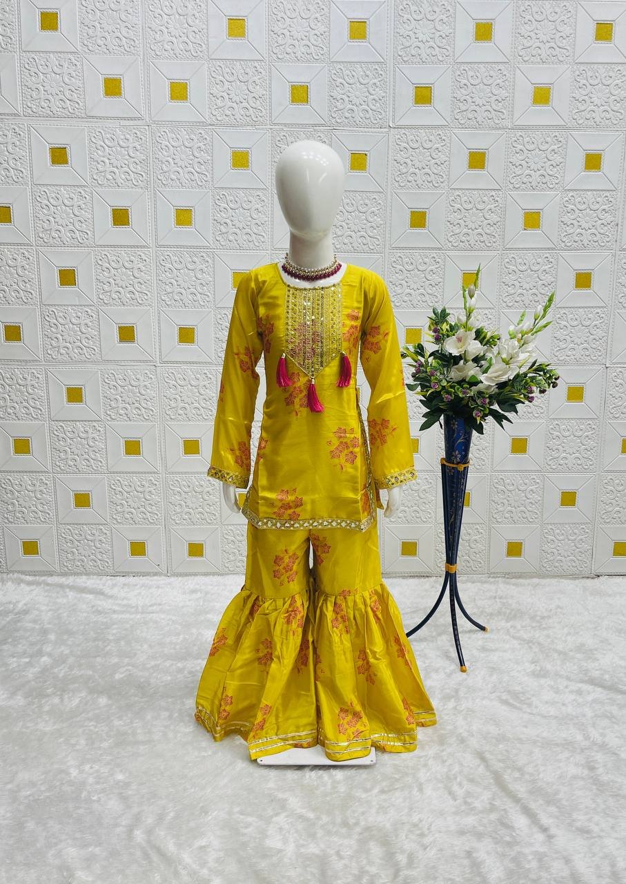 Girl’s Chinon Embroidery Straight Kurta Sharara With Dupatta