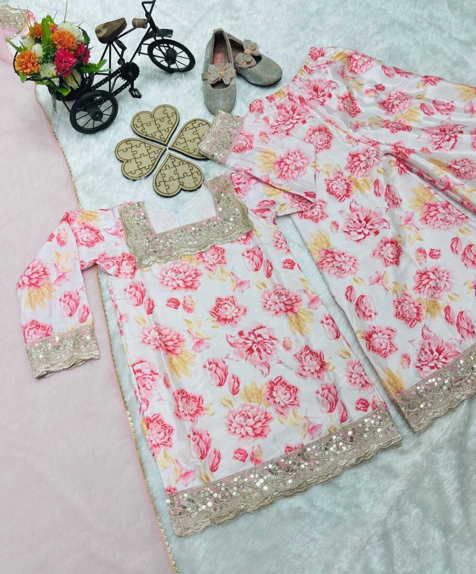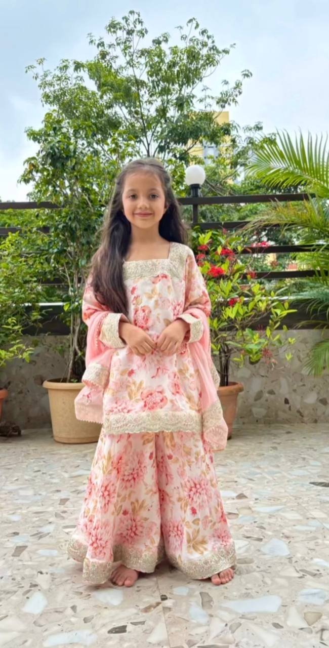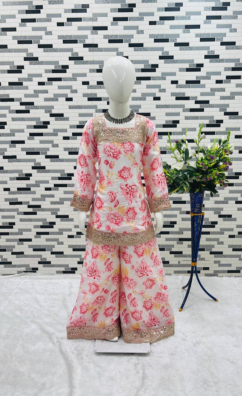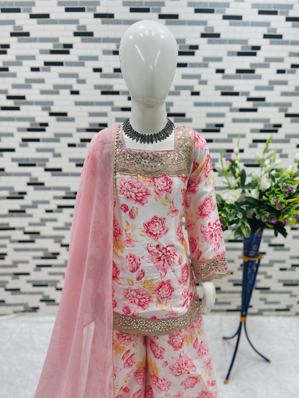 Girl’s Chinon Embroidery Straight Kurta Sharara With Dupatta