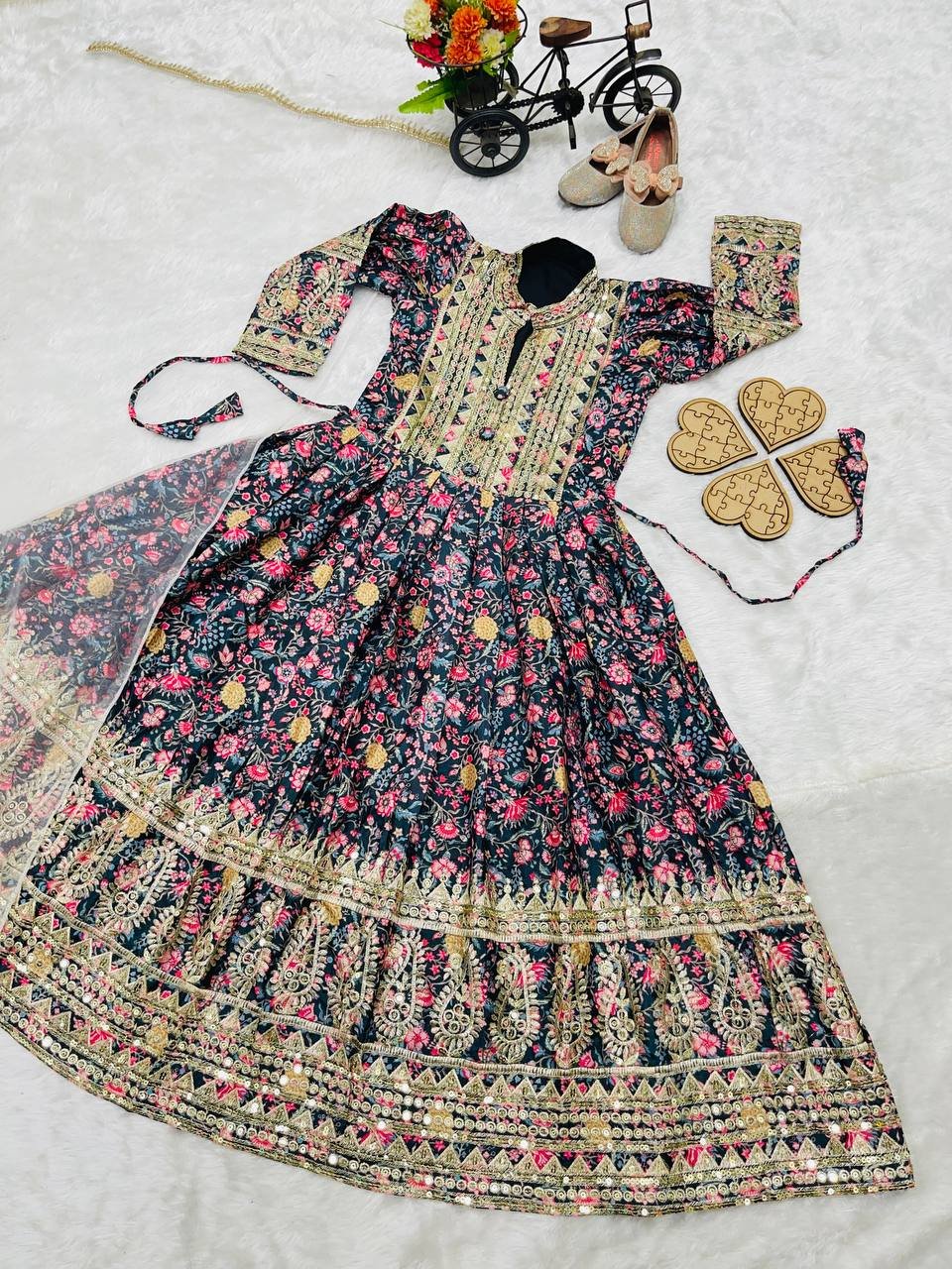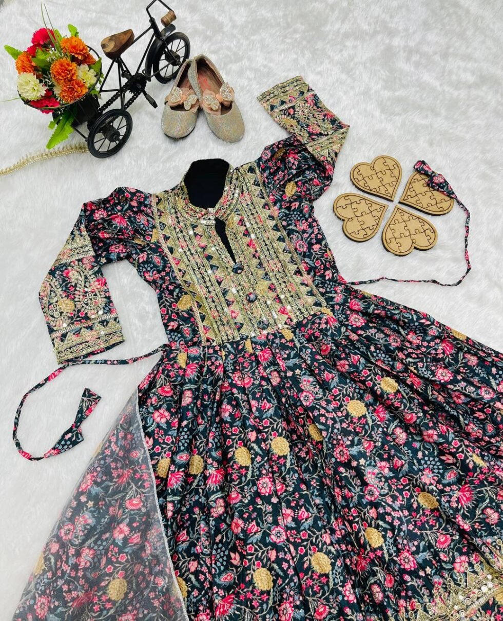 Girl’s Chinon Silk Digital Print Anarkali Gown With Dupatta