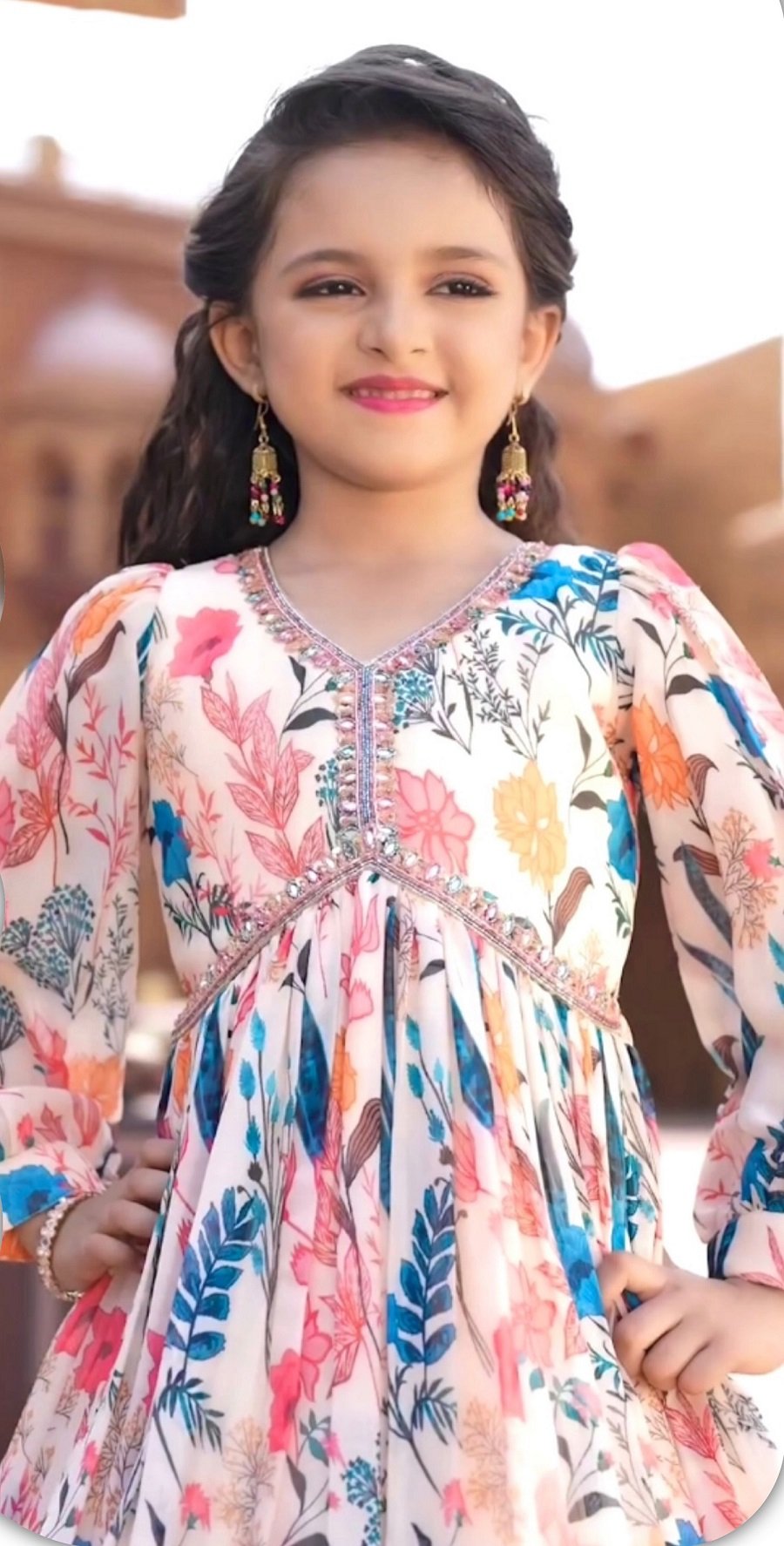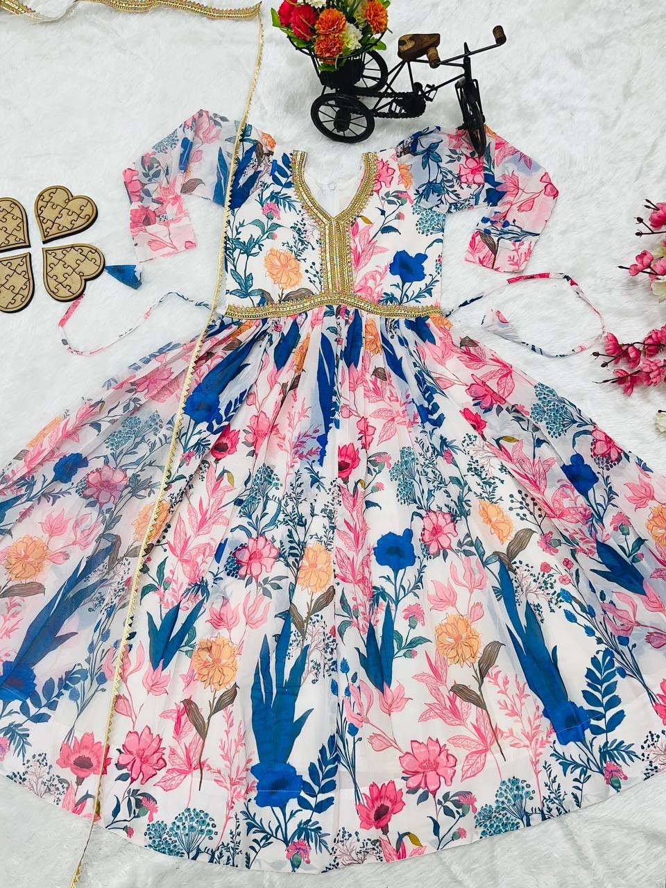 Girl’s Faux Georgette Digital Print Anarkali Gown With Dupatta