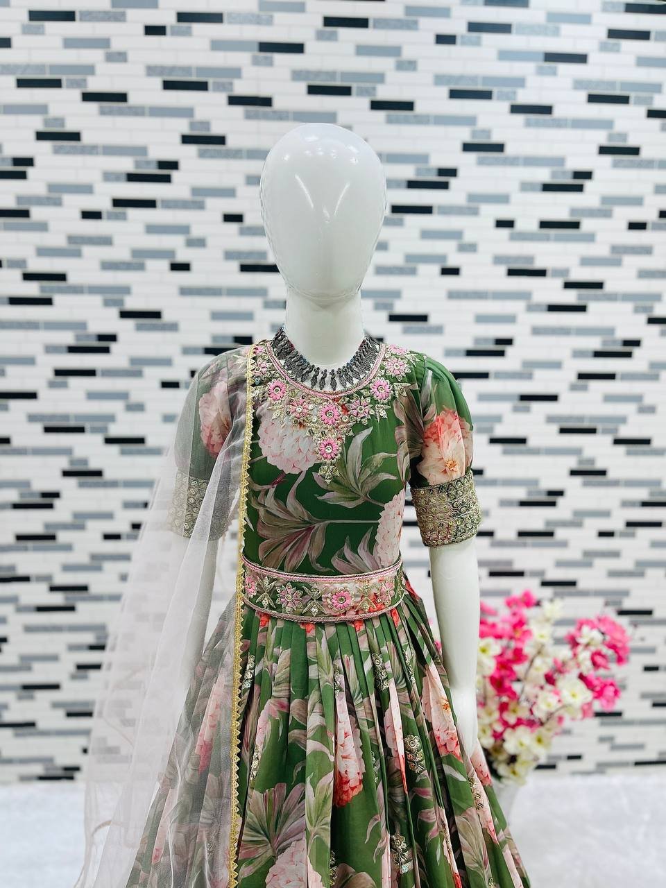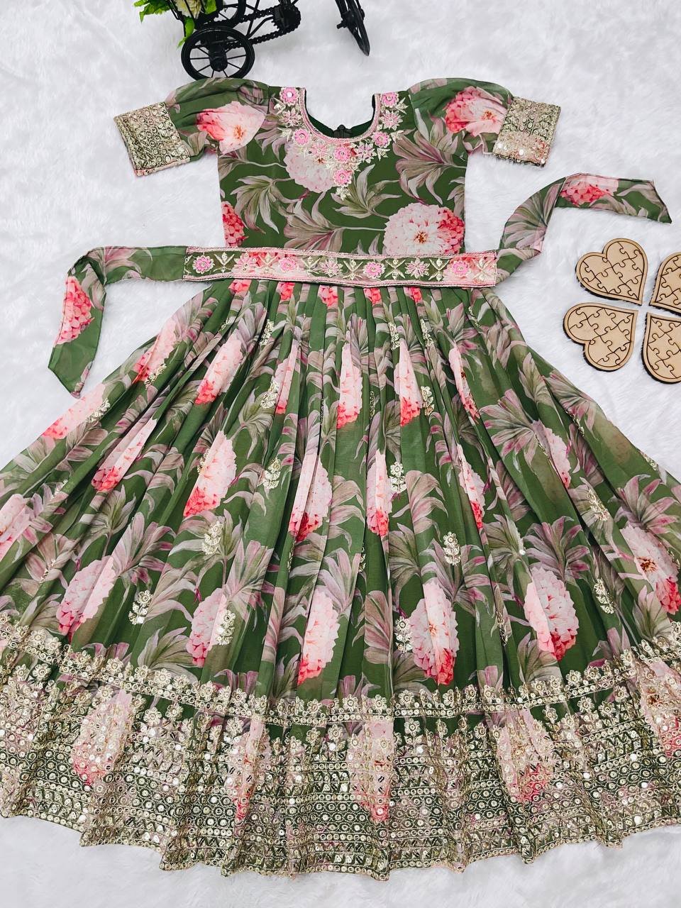Girl’s Faux Georgette Digital Print Anarkali Gown With Dupatta