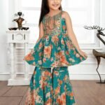 Girl’s Faux Georgette Digital Print Flared Top Sharara With Dupatta