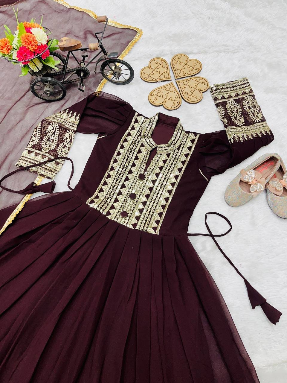 Girl’s Faux Georgette Embroidery Anarkali Gown With Dupatta