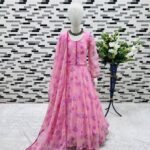 Girl’s Faux Georgette Printed Anarkali Gown With Dupatta
