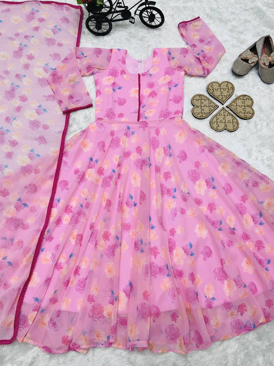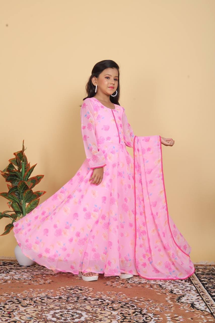 Girl’s Faux Georgette Printed Anarkali Gown With Dupatta