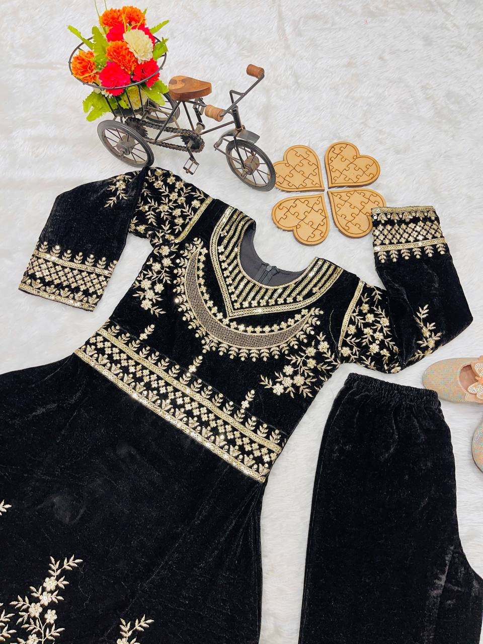 Girl’s Viscose Velvet Embroidery Anarkali Gown With Pant