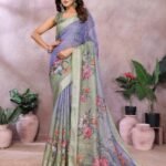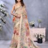 Linen Shimmer Digital Print Saree With Unstiched Blouse Piece