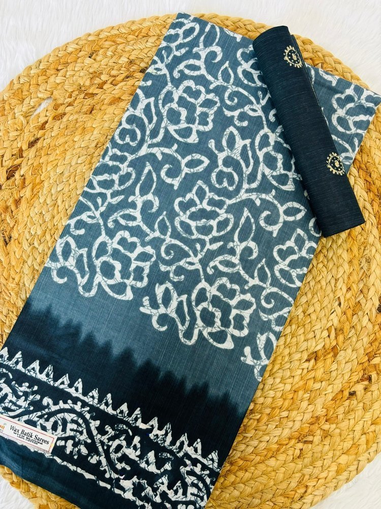 Malishka Export Cotton Printed Saree With Unstiched Blouse Piece