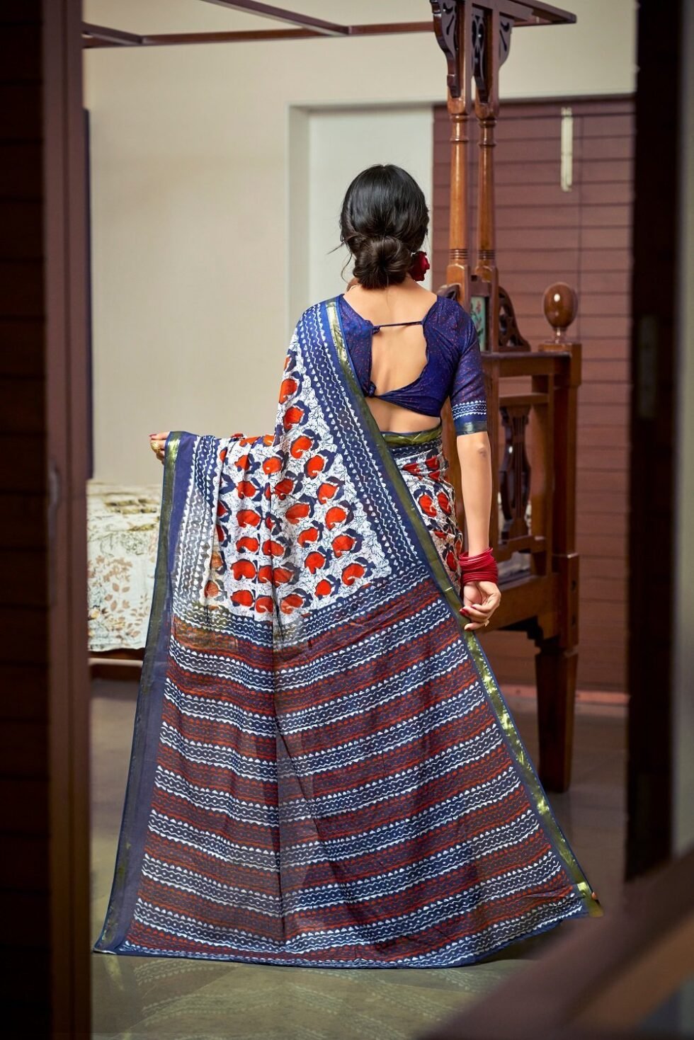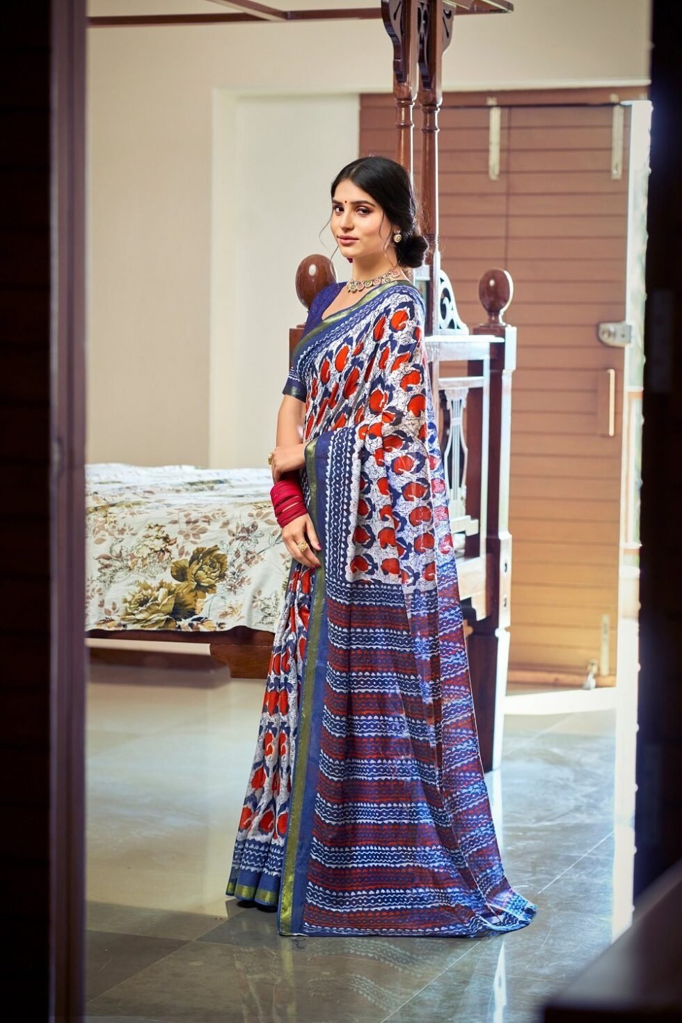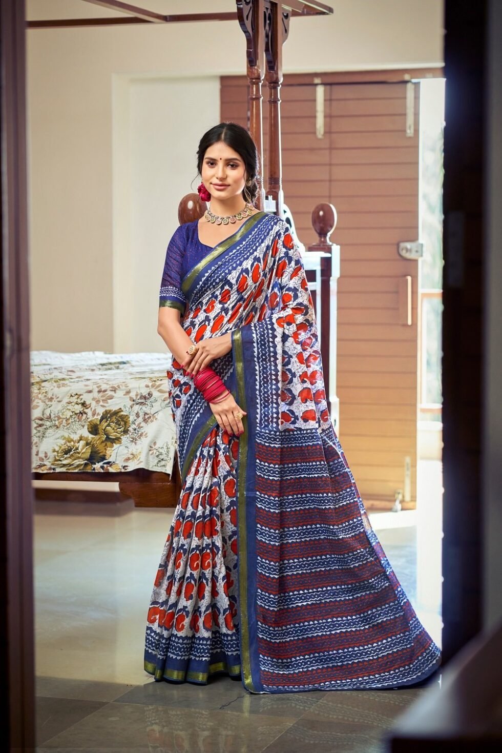 Malishka Export Cotton Printed Saree With Unstiched Blouse Piece