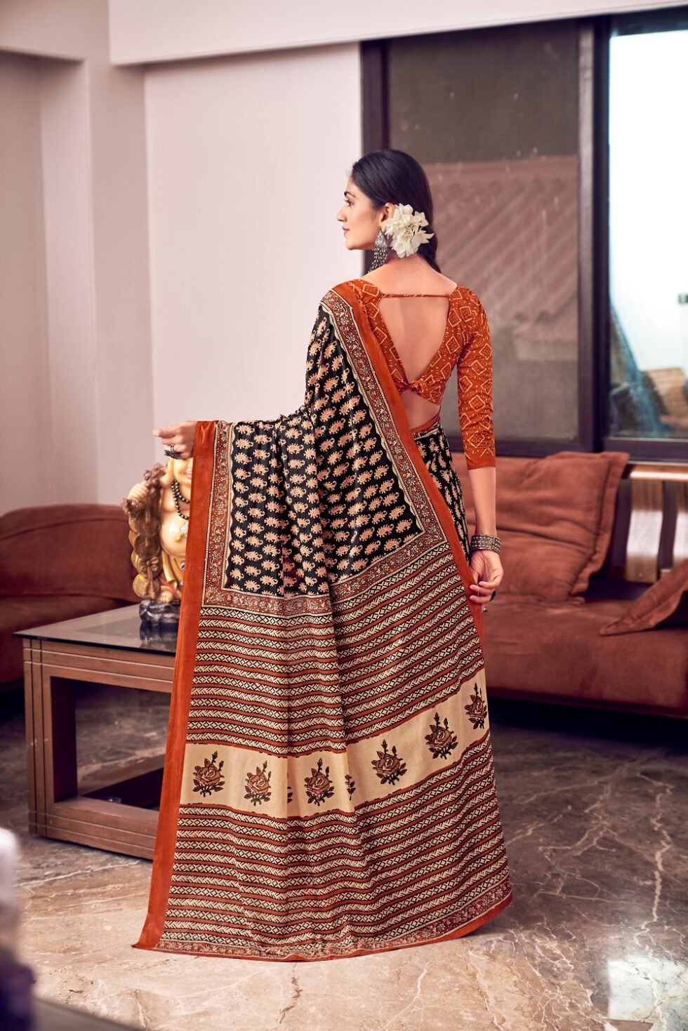 Malishka Export Cotton Printed Saree With Unstiched Blouse Piece