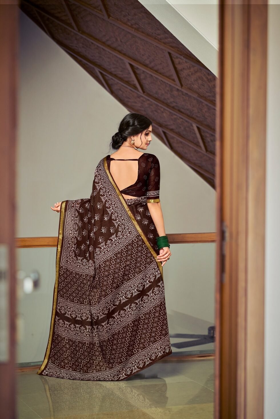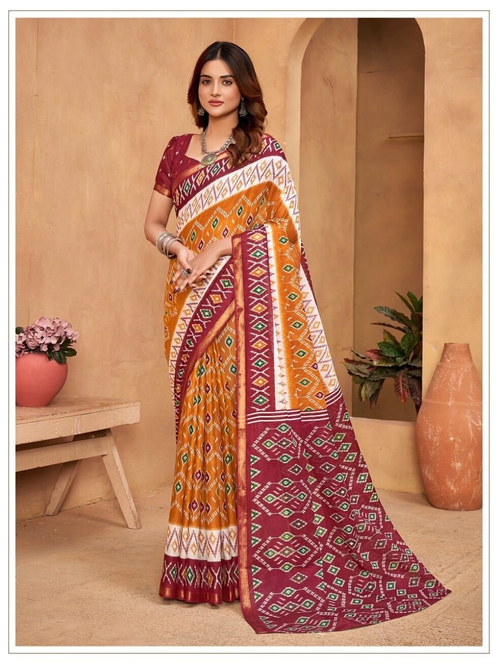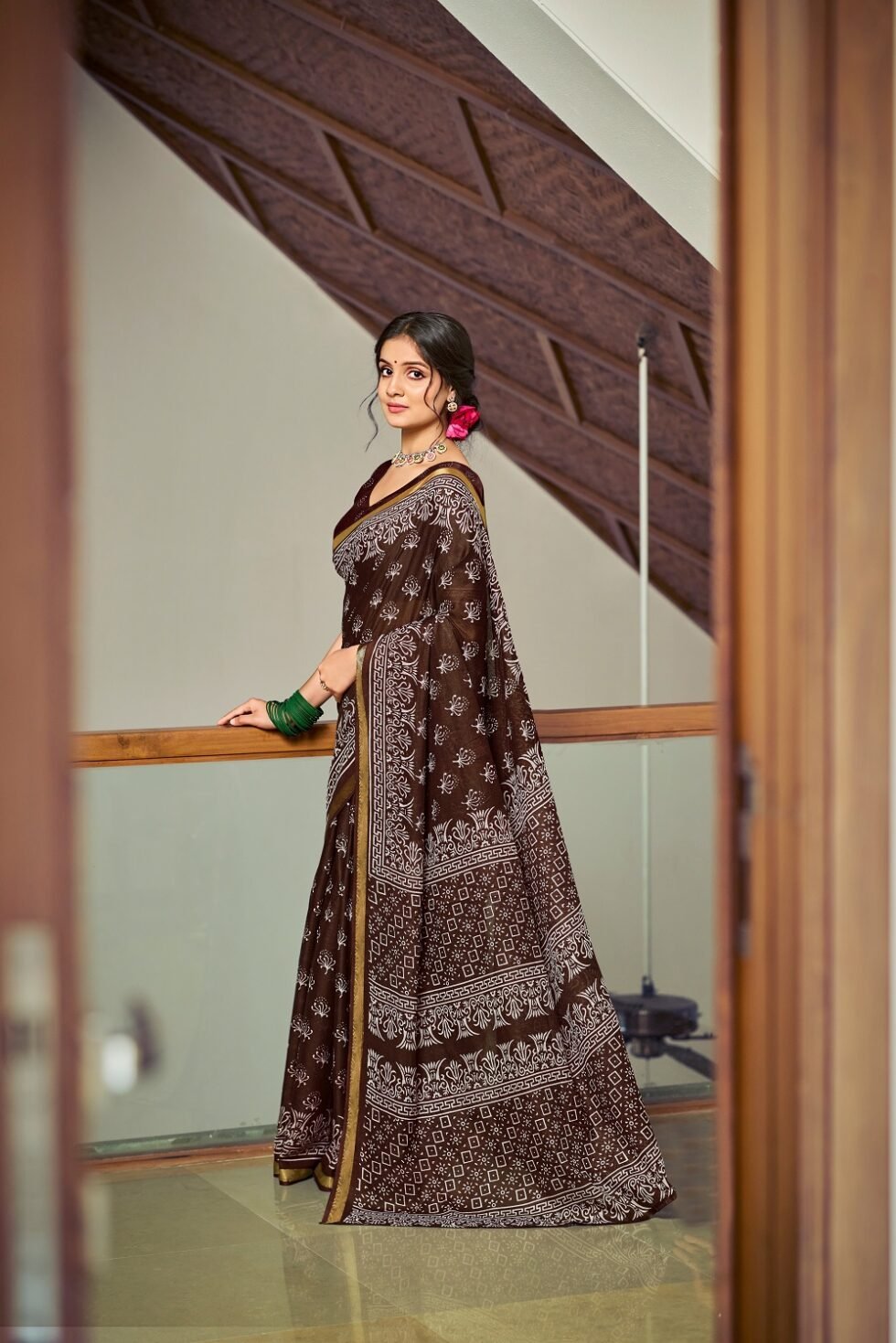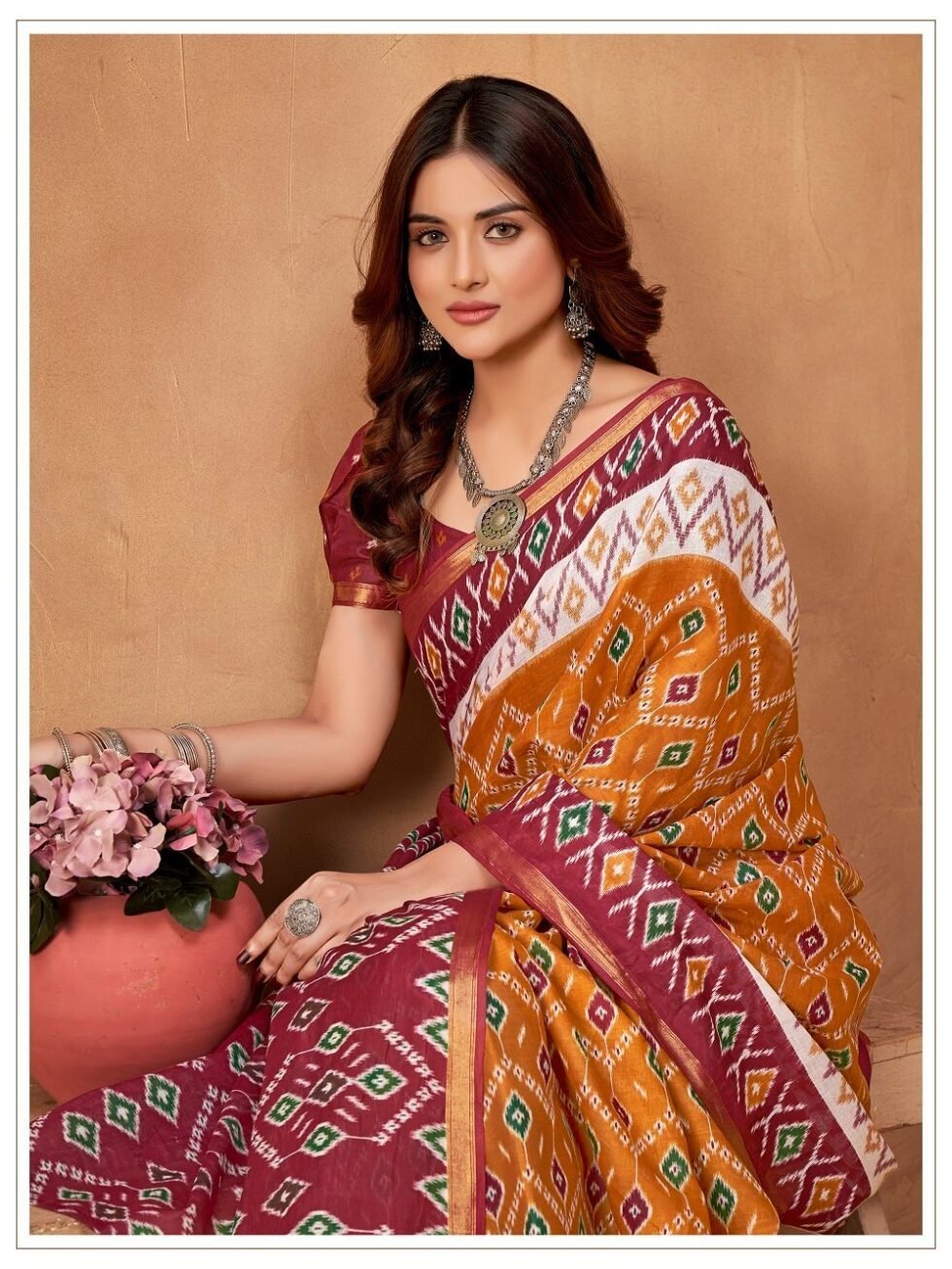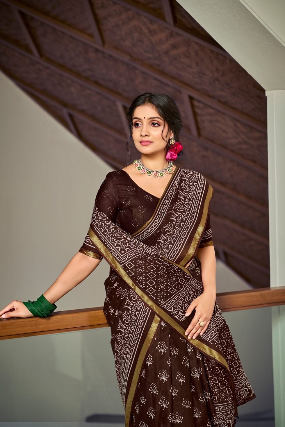 Malishka Export Cotton Printed Saree With Unstiched Blouse Piece