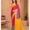 This is Cotton saree having Printed work on it. Cotton sarees are a staple of Indian traditional wear, known for their comfort, versatility, and durability. They are made from natural, breathable cotton fabric, making them ideal for various climates, especially hot and humid ones. Cotton sarees are versatile enough to be worn for everyday wear, formal occasions, and even special events.
