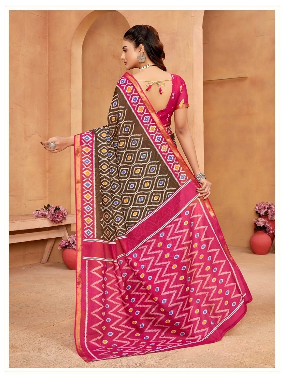 Malishka Export Cotton Printed Saree With Unstiched Blouse Piece