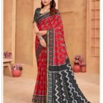 This is Cotton saree having Printed work on it. Cotton sarees are a staple of Indian traditional wear, known for their comfort, versatility, and durability. They are made from natural, breathable cotton fabric, making them ideal for various climates, especially hot and humid ones. Cotton sarees are versatile enough to be worn for everyday wear, formal occasions, and even special events.